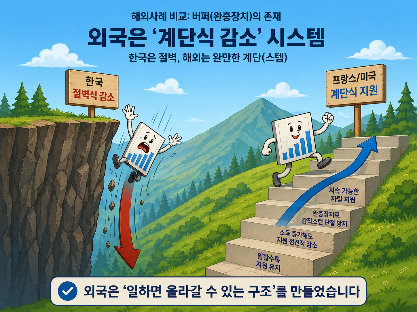 이것은 단순히 “돈이 조금 줄었다”는 문제가 아니라, 제도 설계 자체가 근로 의욕을 꺾는 구조로 작동한다는 의미입니다.