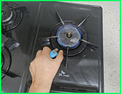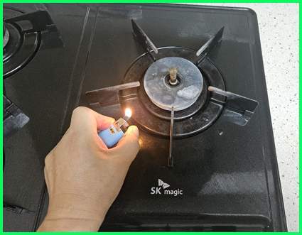 7. 불이 켜지는 것을 봐서 가스 공급에는 이상이 없음을 확인합니다.
