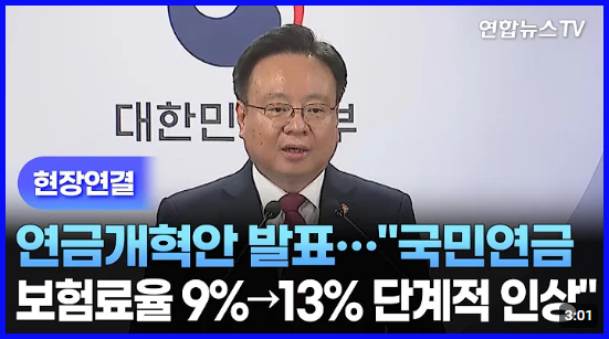 앞서 국회 연금개혁특별위원회에서 국민의힘은 ‘보험료 13%-소득대체율 43%’를, 민주당은 ‘보험료 13%- 소득대체율 45%’를 제안한 바 있습니다.