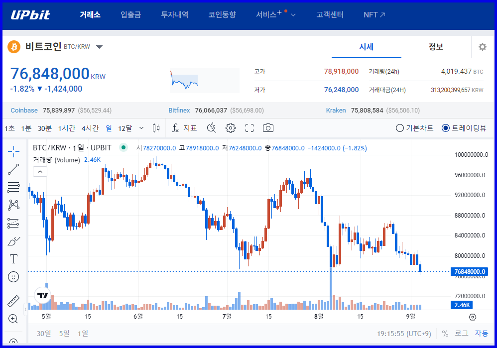 2024년 대통령 선거가 다가옴에 따라 미국의 양당 대통령 후보가 공히 암호화폐와 암호화폐 업계에 대해 러브콜을 보내면서 한때 상승세를 보이던 비트코인이 결국, 8월 24일 6만 4,000달러(약 8,580만 원)까지 상승했다가 점차 하락세를 보이며 2024년 9월 4일 오후 7시 국내 거래소 업비트(UPbit) 기준 5만 7,300달러 약 7,680만 원까지 하락세를 보였습니다.