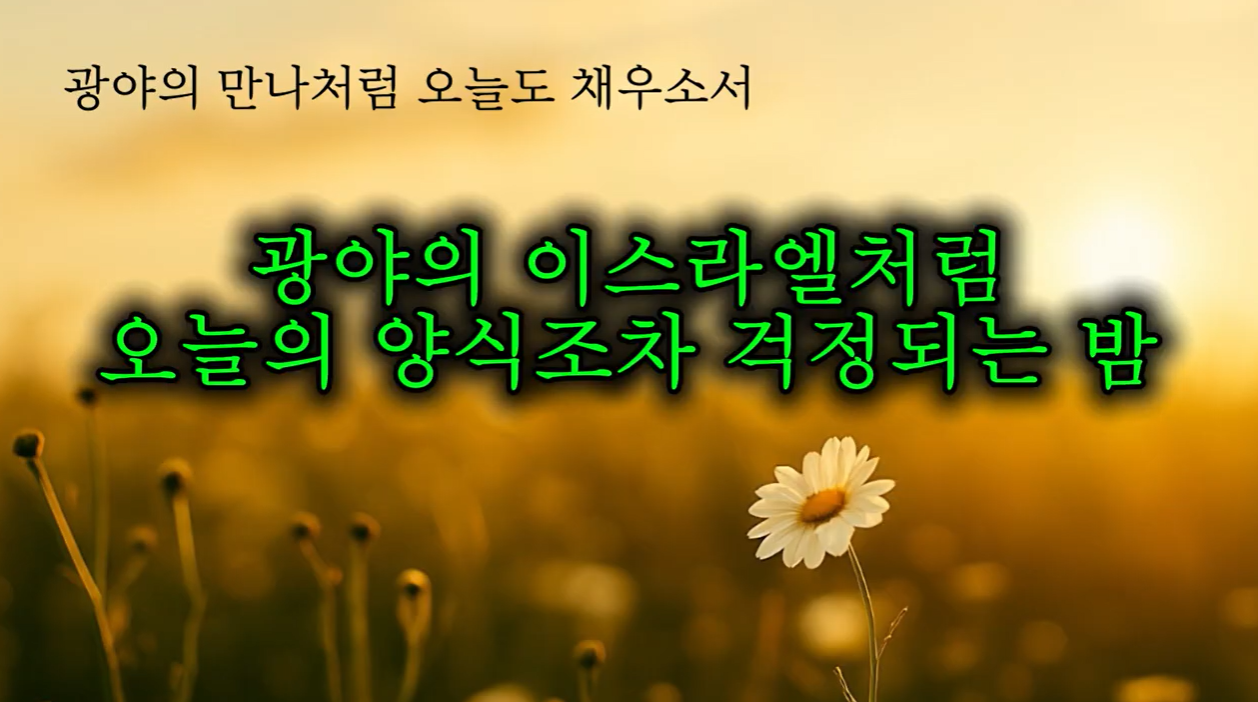 하나님은 우리가 미래의 불안에 갇히기보다, 오늘 우리에게 필요한 것을 정확히 채우시는 하나님을 현재형으로 신뢰하길 원하십니다.