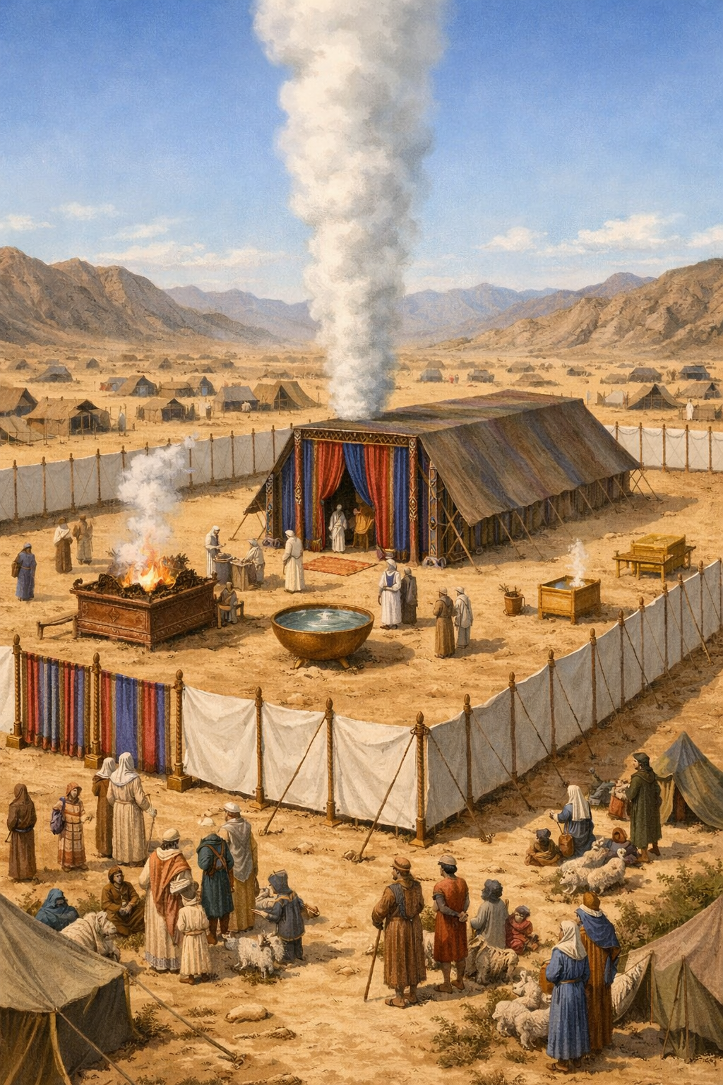 - 📍 삶의 중심(Center) : 이스라엘 12지파는 항상 성막을 중심으로 동서남북에 진을 쳤습니다. 아침에 일어나 텐트 문을 열면 가장 먼저 눈에 들어오는 것이 성막 위의 구름 기둥이었습니다. 이는 이스라엘의 모든 우선순위가 늘 '하나님의 임재'에 집중되어야 함을 가르쳐 줍니다.