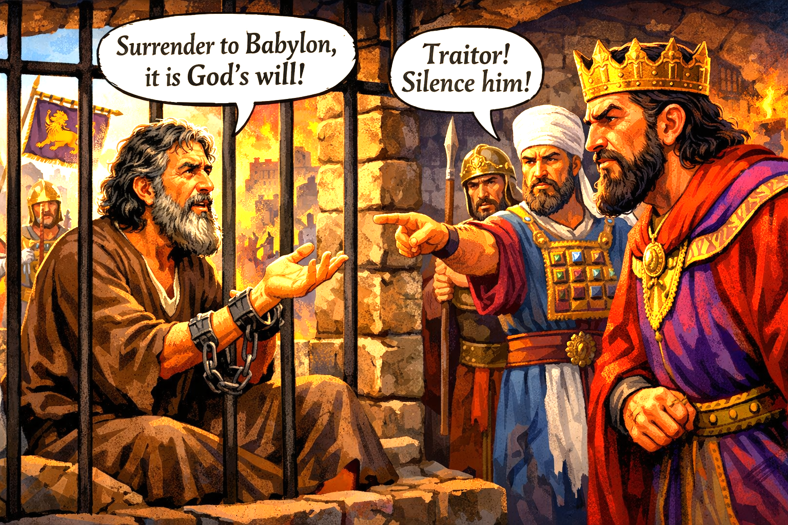 예레미야는 심지어 "바벨론에 항복하는 것이 하나님의 뜻이며 사는 길"이라는 파격적인 메시지를 전했지만, 유다의 지도자들은 이를 매국적인 발언으로 치부하며 그를 옥에 가두었습니다.