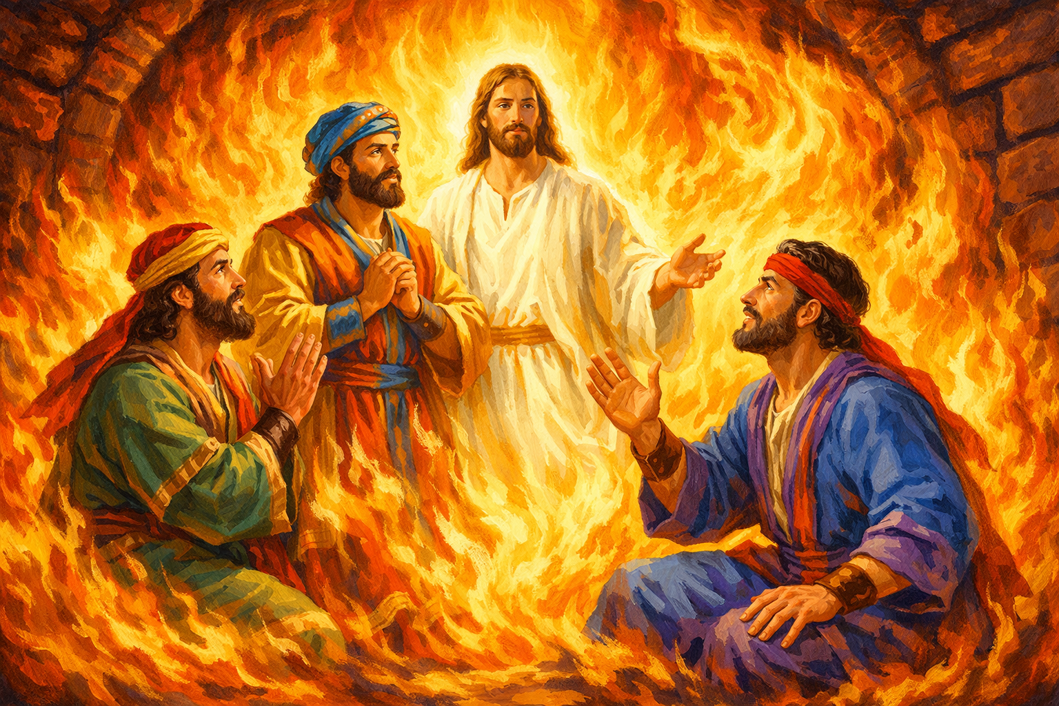 세 친구가 불속에 던져진 순간, 놀라운 광경이 펼쳐졌습니다.