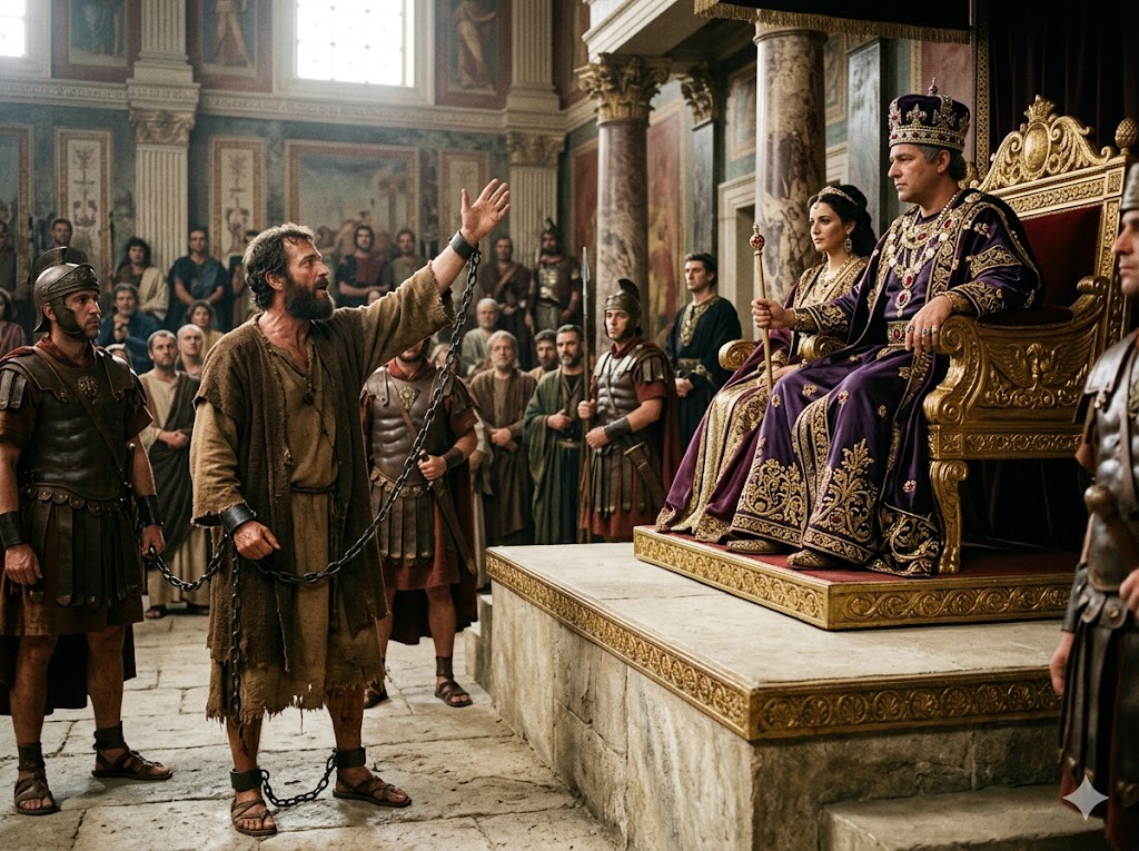 - 권력자들 앞에서의 증언 : 벨릭스 총독, 베스도 총독, 그리고 아그립바 왕 앞에서 당당히 복음을 전합니다.
