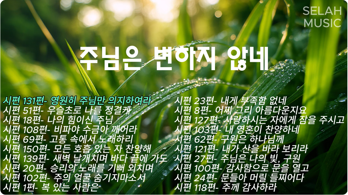 지친 영혼을 달래주고, 빈 마음을 채워주는 시편 찬양 20곡 모음