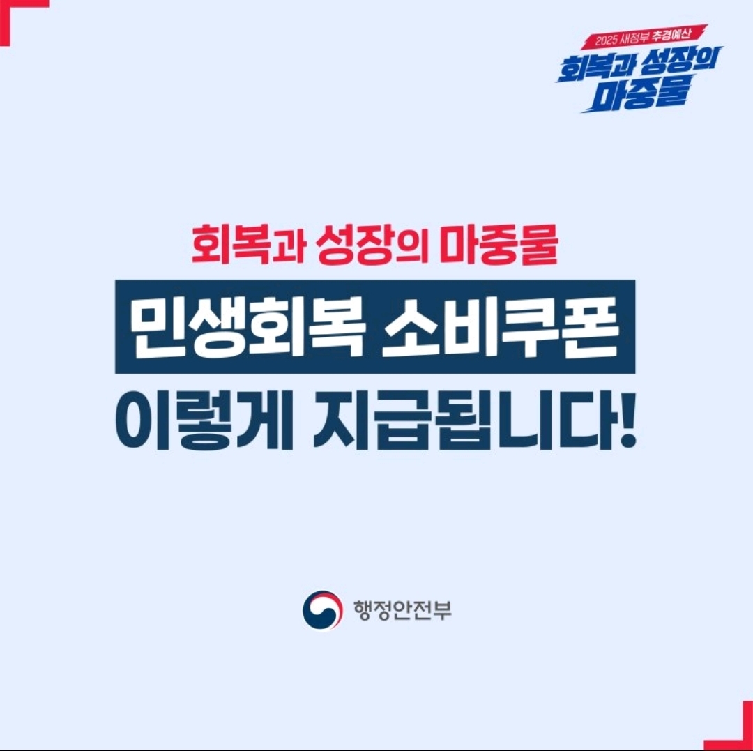 오늘(2025.07.21)부터 민생회복 소비쿠폰 신청이 시작되었습니다.