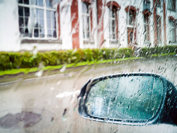 차창을 타고 내리는 빗물에