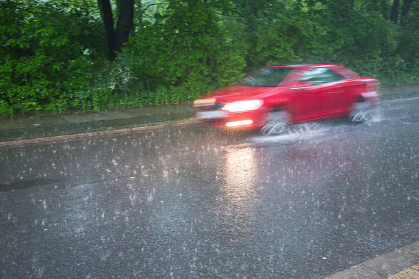 빗속을 달리는 자동차 불빛