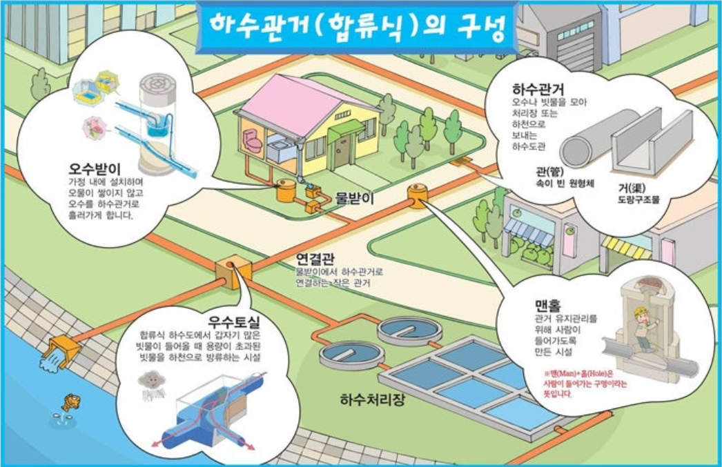 하수관거(하수관로) : 하수를 흐르게 하는 관을 말합니다.