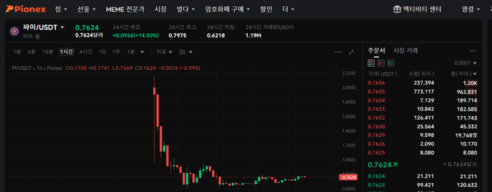 OKX의 콜 옥션 시간 동안 파이 가격은 0.09달러에서 2.2달러를 오르내렸으며, 주로 2달러 선에 머물러 있었던 것을 확인할 수 있었습니다.