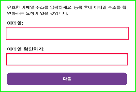 ◯ 나중에 이메일 인증을 받아야 하므로 정확한 사용 이메일을 입력합니다.