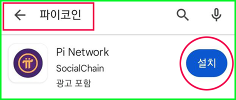 ◯ Google Play 스토어에서 : “파이코인” 또는 "Pi Network" 검색 후 설치합니다.