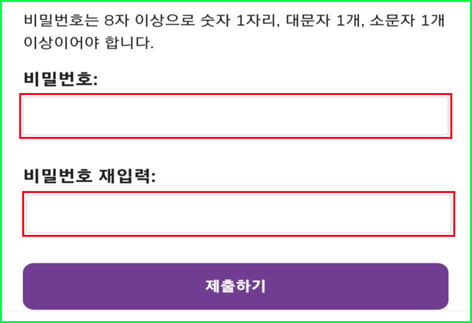 ◯ 비밀번호는 8 자 이상 영문 대문자, 소문자, 숫자가 모두 포함되어야 합니다..