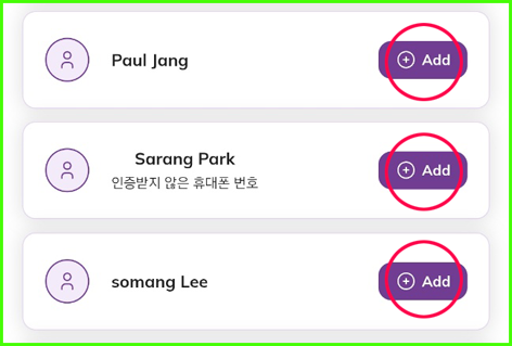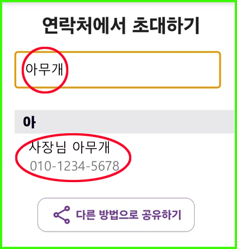 ▷ 검색 후 이름을 누르면 상대방 휴대폰 문자로 다음과 같은 초대장이 간다.