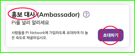 Pi 알리기(초대하기) : 사람들을 Pi Network에 가입하도록 초대하여 나의 채굴 속도를 높인다.