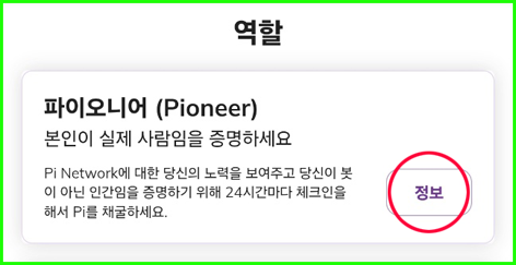 3. 맨 위 “파이오니어(Pioneer)”의 “정보” 탭 클릭하면