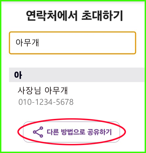 ▷ 위 화면에서 “다른 방법으로 공유하기”를 눌러서 필요한 방법으로 초대장을 보낸다.