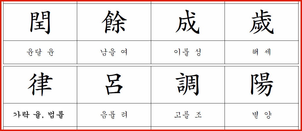 오늘은 '閏餘成歲 律呂調陽'을 통하여 시간의 조화, 즉 “윤달이 남은 날을 메워 한 해를 이루고, 율려(음률)가 조화되어 양기를 고른다.”는 내용과 의미를  살펴보고자 합니다.