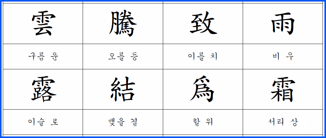천자문 : 구름이 비를 만들고, 이슬이 서리가 됨, 자연의 순환과 기운의 변화.